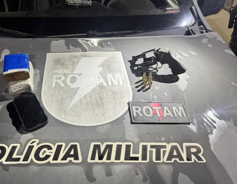 Guarnições do Batalhão de Polícia Militar de Rotam apreenderam um revólver calibre 38 e cerca de 800 gramas de maconha em um apartamento no conjunto José Tenório, no bairro da Serraria, parte alta de Maceió, nessa quarta-feira (4/9). O material estava em posse de um homem de 28 anos, acusado de homicídio qualificado e foragido da Justiça.