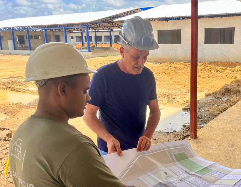 Prefeito verifica andamento das obras da nova escola em Branquinha