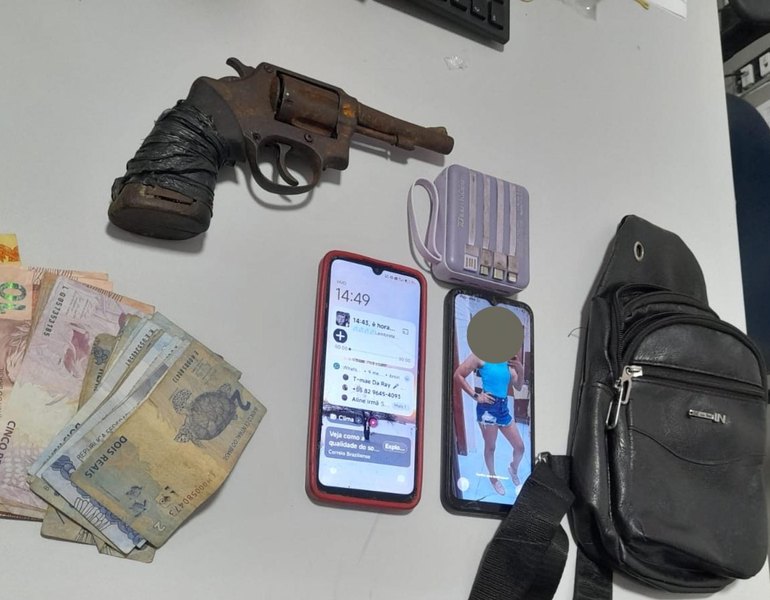 De acordo com a Polícia Militar, o suspeito foi detido por populares durante a ação criminosa frustrada e, ao ser abordado, estava em posse de um revólver calibre 38 e dois celulares.
