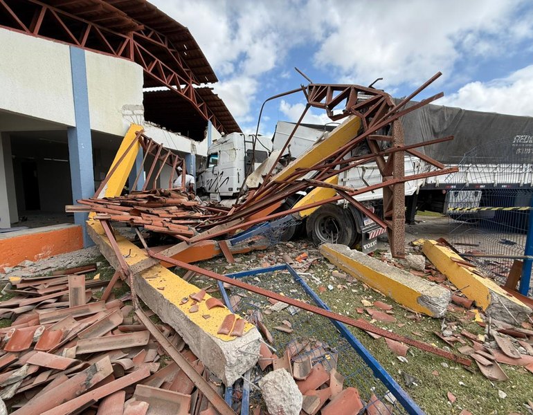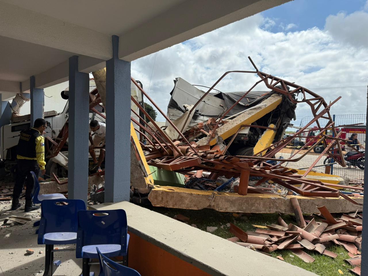 Carreta desgovernada derruba fachada de escola no interior de Alagoas