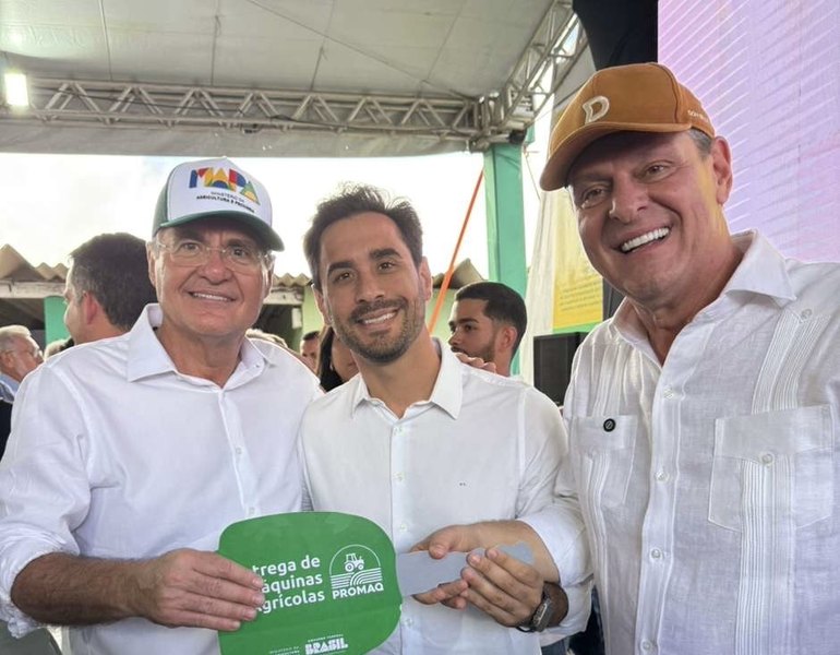 O prefeito de Santana do Mundaú, André Castro, anunciou nesta sexta-feira (18/10) a conquista de uma nova retroescavadeira para o município, fruto de indicação do senador Renan Calheiros. A entrega ocorreu em Maceió, durante solenidade conduzida pelo ministro da Agricultura e Pecuária, Carlos Fávaro, e pelo ministro dos Transportes, Renan Filho.