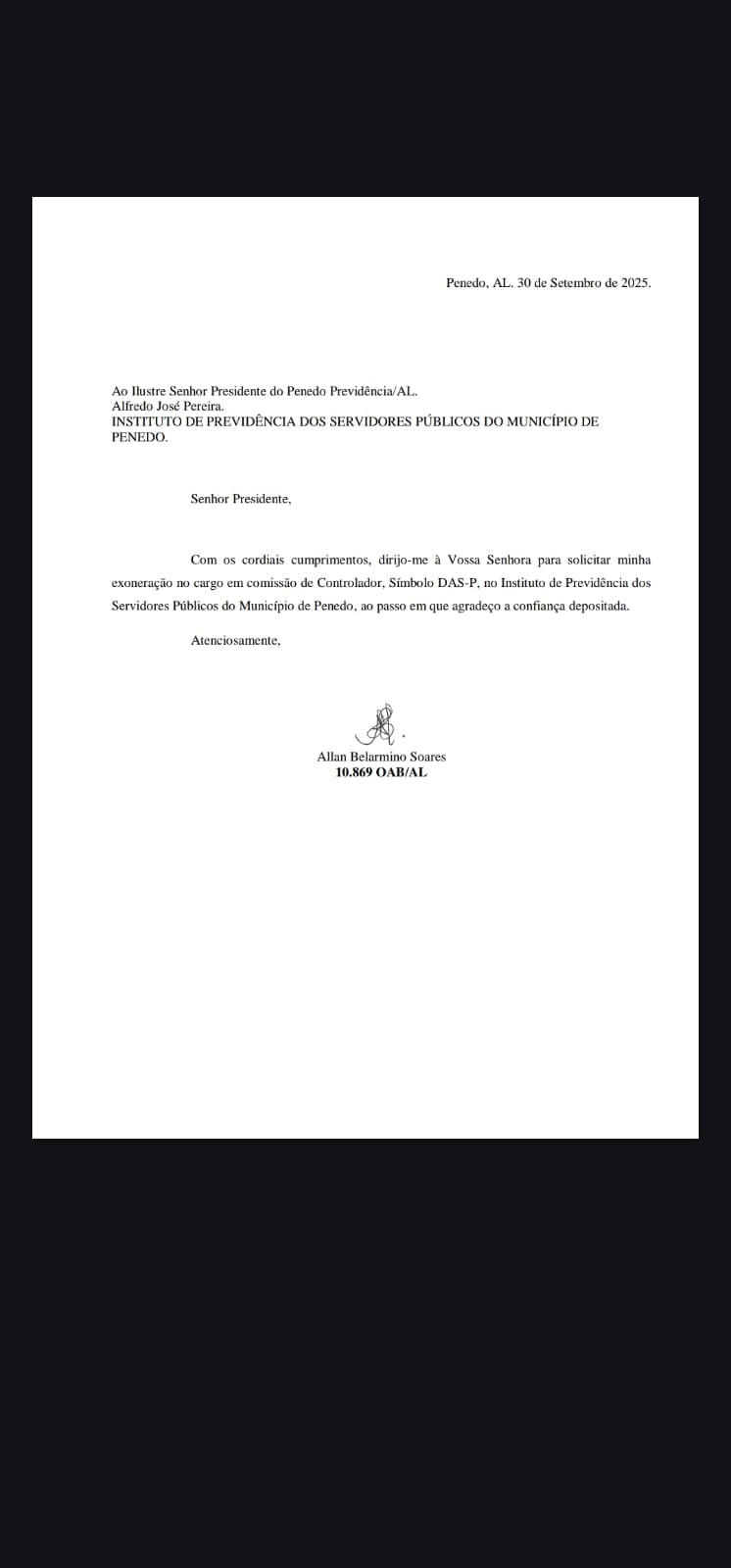 Uma investigação documental completa realizada pelo portal O Alagoano desmonta a versão apresentada por Allan Belarmino sobre sua saída do cargo de controlador do município de Penedo.