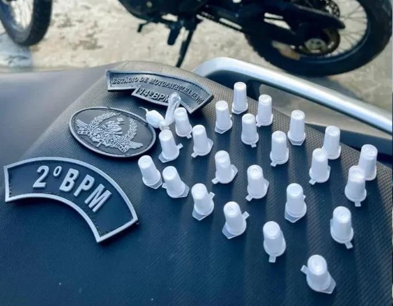 Ao perceber a presença das viaturas, a mulher tentou escapar conduzindo uma motocicleta Honda Bros sem capacete, mas acabou sendo interceptada. Durante a abordagem, ela havia descartado um pacote que, ao ser recolhido pelos policiais, continha 24 pinos de cocaína, totalizando aproximadamente 30 gramas da droga.