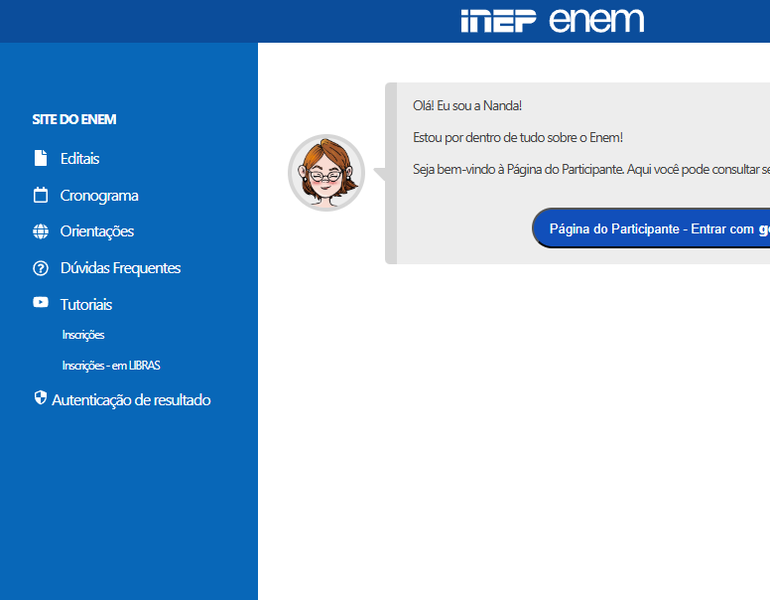 Para acessar e imprimir o cartão, o participante deve entrar na Página do Participante com login do Gov.br, selecionar a opção “Local de Prova”, clicar no ícone azul apresentado pelo assistente virtual e, em seguida, usar o botão “Imprimir” no final da página.