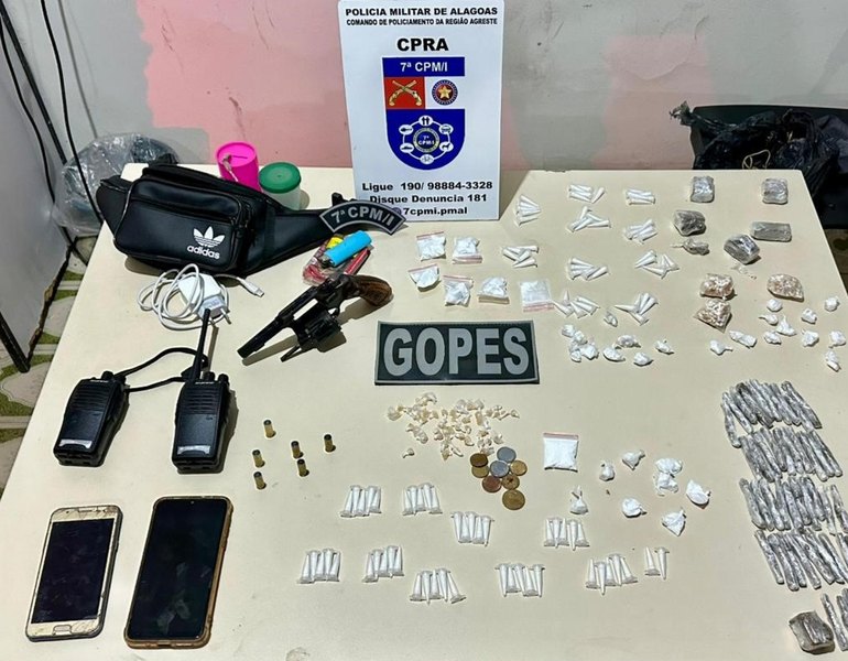 Já em São Miguel dos Campos, policiais da 1ª CPM/I flagraram um jovem de 19 anos portando uma pistola 9mm e 32 gramas de maconha na Rua São José. O suspeito tentou fugir ao perceber a aproximação da viatura, mas foi contido e conduzido à 6ª Delegacia Regional de Polícia Civil (DRP), onde o material apreendido foi apresentado.