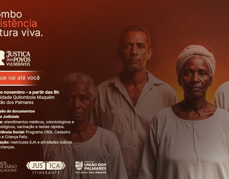 A Comunidade Quilombola Muquém, em União dos Palmares, receberá nesta sexta-feira (7) o programa Justiça Itinerante, uma iniciativa do Tribunal de Justiça de Alagoas (TJAL) que leva serviços gratuitos e cidadania a populações em situação de vulnerabilidade. A ação começa às 8h, na Escola Municipal Pedro Pereira, localizada na Rua da Paz, nº 67.