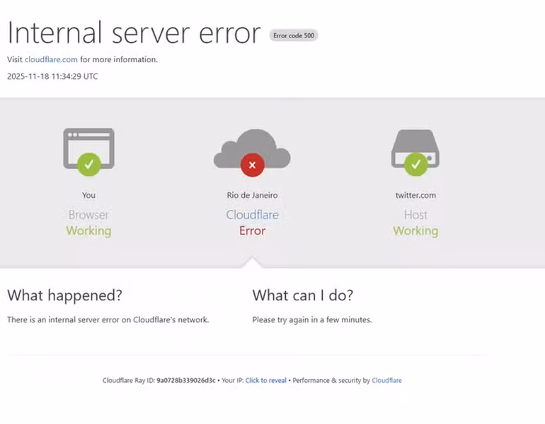 Uma falha técnica de grandes proporções na rede global da Cloudflare deixou centenas de sites e aplicativos instáveis na manhã desta terça-feira (18/11), causando lentidão, dificuldade de acesso e quedas completas em diversos serviços essenciais ao redor do planeta. A empresa, que fornece infraestrutura de tráfego e proteção digital para milhões de usuários, confirmou a instabilidade pouco depois das 9h e mobilizou equipes para identificar a origem do problema.