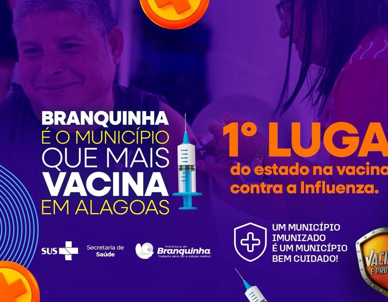 “Município imunizado é um município bem cuidado.” É com essa ideia que a Prefeitura de Branquinha, por meio da Secretaria de Saúde, comemorou o alcance da meta de cobertura da vacinação contra a Influenza, resultado que colocou o município na primeira posição entre as cidades de Alagoas.