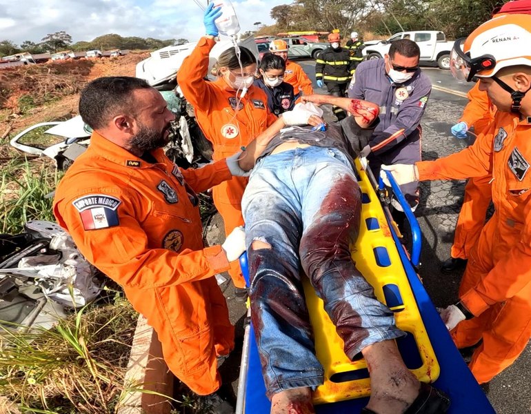 Segundo a Central de Regulação das Urgências (CRU), a situação foi imediatamente classificada como de alta complexidade, já que o condutor de um dos carros ficou preso às ferragens. A vítima apresentava fratura exposta na perna esquerda, fratura fechada de fêmur no mesmo lado, confusão mental, agitação e redução do nível de consciência.