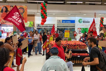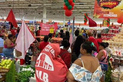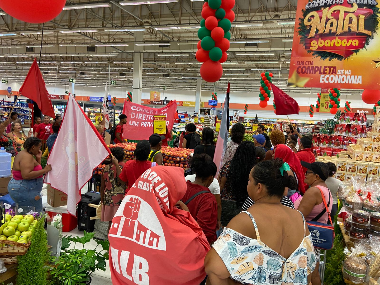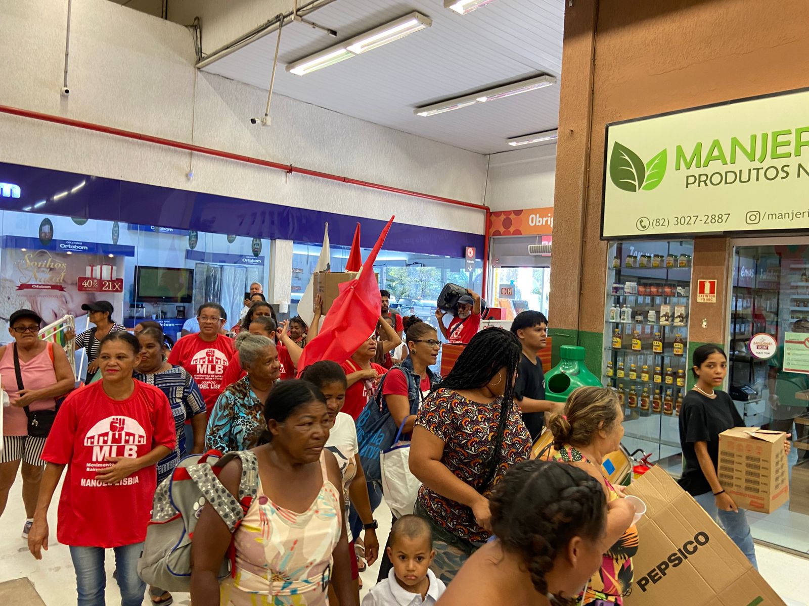 Famílias de comunidades do Vergel do Lago, Vale do Reginaldo, Riacho Doce e Vila Emater ocuparam, neste sábado (20/12), uma unidade do supermercado GBarbosa, localizada no bairro da Serraria, parte alta de Maceió. A mobilização foi organizada pelo Movimento de Luta nos Bairros, Vilas e Favelas (MLB) e teve como objetivo denunciar o aumento do custo dos alimentos e exigir a doação de cestas básicas para moradores das periferias da capital alagoana.