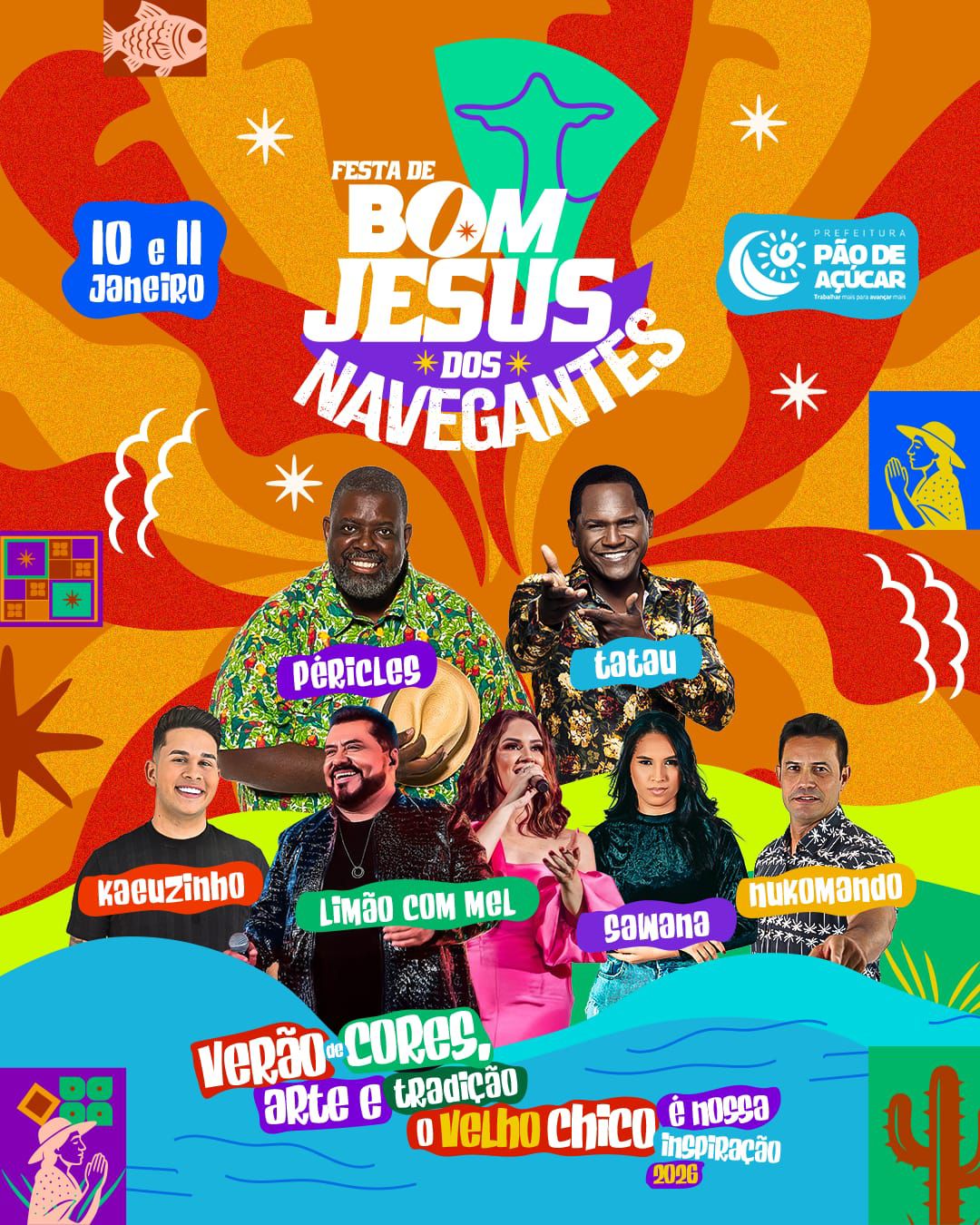 A Prefeitura de Pão de Açúcar anunciou a programação musical da Festa de Bom Jesus dos Navegantes 2026, um dos eventos mais tradicionais e aguardados do calendário cultural do município. A celebração será realizada nos dias 10 e 11 de janeiro, às margens do Rio São Francisco, integrando a programação do Verão de Cores, Arte e Tradição.