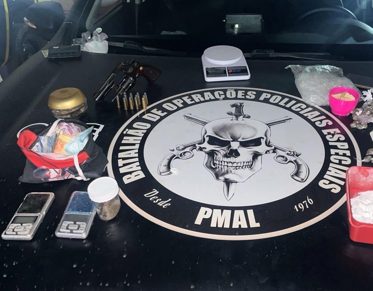 Após monitoramento da área, os policiais flagraram o suspeito no momento em que desenterrava e organizava o material ilícito. Na abordagem, foram apreendidos aproximadamente 390 gramas de maconha, 95 gramas de crack e uma balança de precisão. Durante a ocorrência, o homem indicou ainda a existência de uma arma de fogo guardada na casa de um familiar. Com autorização da moradora, a guarnição localizou um revólver calibre 38 com três munições intactas.