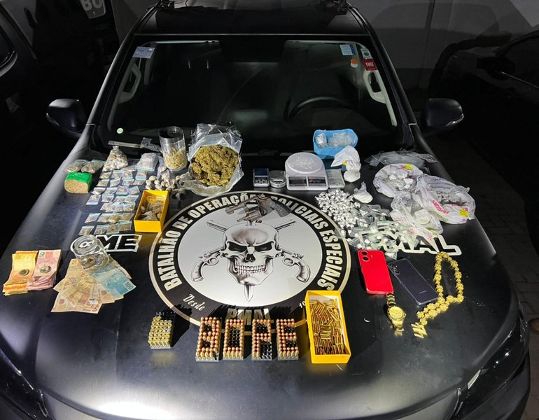 As investigações tiveram início após denúncia anônima indicando a comercialização de drogas em um apartamento localizado em um residencial no Benedito Bentes. No endereço, e com autorização da proprietária, os militares realizaram buscas e encontraram 200 munições calibre 9 mm intactas, 29 gramas de maconha, 445 gramas de cocaína, R$ 170 em dinheiro e uma balança de precisão.