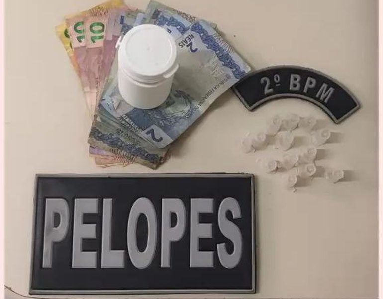 Antes de ser abordado, o homem arremessou um saco plástico no terraço de uma residência localizada na Rua Presidente Jânio Quadros. Ao recuperar o material, os policiais encontraram 13 pedras de crack acondicionadas em pinos, prontas para a venda, além de R$ 136 em dinheiro trocado, caracterizando o tráfico de entorpecentes.