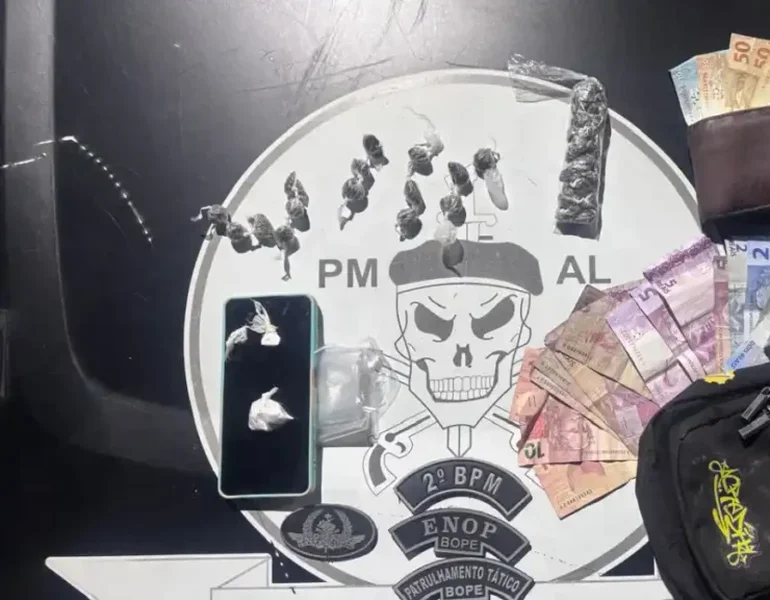 Mulher é presa por tráfico após suspeito fugir durante abordagem policial em União dos Palmares