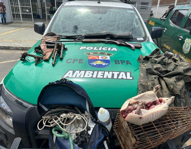 Em outro ponto da área rural, os policiais se depararam com indivíduos em atitude suspeita que fugiram ao perceber a aproximação da fiscalização, embrenhando-se na vegetação. Durante as buscas, foi localizada uma espingarda de seta, aparentemente adulterada, calibre 22, acompanhada de munições. Apesar das diligências, ninguém foi preso nessa ocorrência.