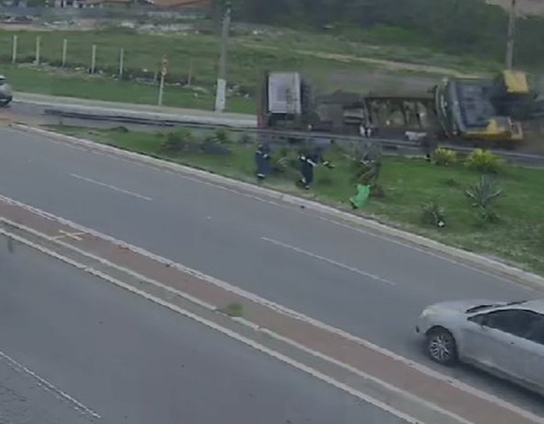Imagens de câmeras de segurança, cedidas pela Secretaria de Segurança Pública, mostram o veículo descendo a avenida desgovernado antes de capotar. O vídeo também revela que três trabalhadores estavam no canteiro e por pouco não foram atingidos.