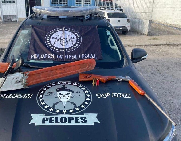 Uma ação da Polícia Militar de Alagoas (PMAL) resultou na apreensão de uma motosserra e de uma espingarda calibre 36 com munições, nessa terça-feira (24/2), na região conhecida como Mata de Riachão, zona rural de Colônia Leopoldina, na Zona da Mata alagoana.
