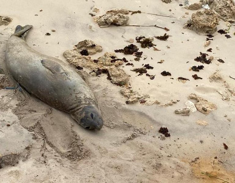 De acordo com os especialistas, trata-se de um indivíduo jovem, com aproximadamente dois metros de comprimento e peso estimado em meia tonelada. A presença do animal na costa está relacionada a um processo natural da espécie, conhecido como muda de pele e pelos.