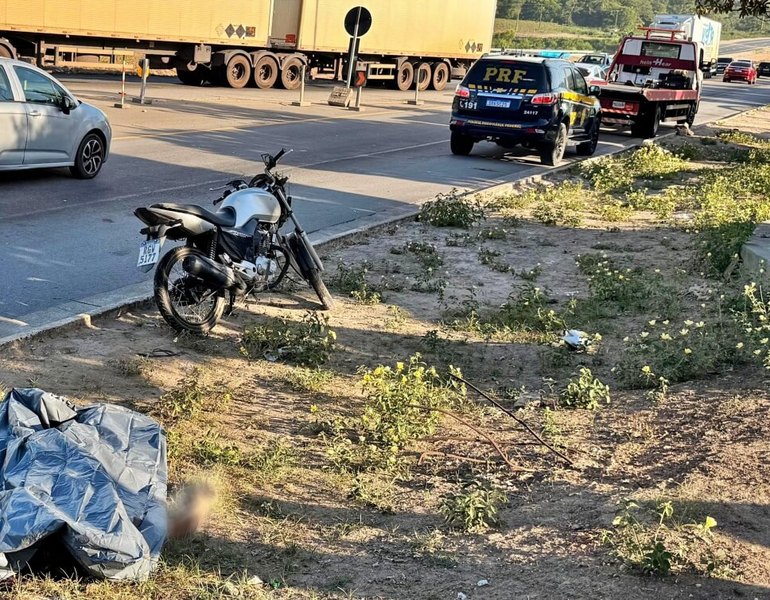 Uma colisão entre uma motocicleta e um caminhão na manhã desta segunda-feira (23) resultou na morte de um homem e deixou outro ferido na BR-101, em São Miguel dos Campos.