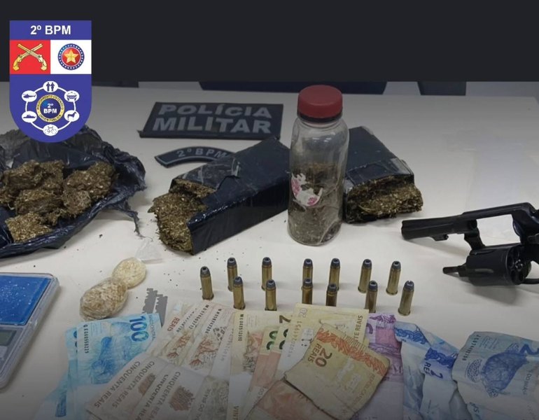 Durante a operação, foram apreendidos aproximadamente 900 gramas de substância análoga à maconha, 20 gramas de crack, um revólver calibre .38 com numeração suprimida, 13 munições do mesmo calibre, além de uma balança de precisão, materiais utilizados para o fracionamento da droga e R$ 827 em dinheiro.