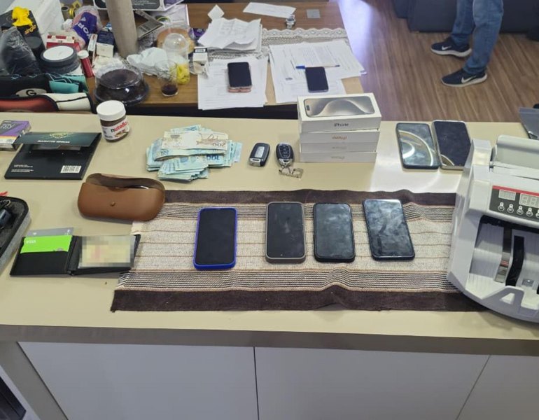 Durante ação na Ponta Verde, policiais da Dinpol e Core cumpriram mandados e apreenderam dinheiro, veículos, celulares, tablets e máquina contadora itens ligados às atividades criminosas.