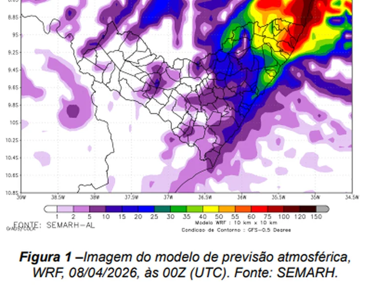 A Secretaria de Estado do Meio Ambiente e Recursos Hídricos de Alagoas informou que as chuvas devem se intensificar em Alagoas entre terça-feira (07/04) e quarta-feira (08/04).