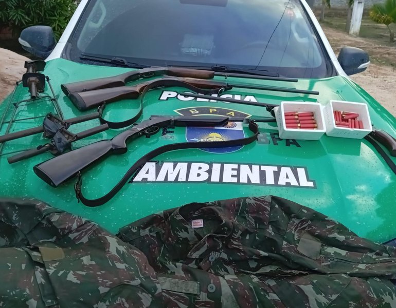 Nos locais indicados, os militares encontraram duas espingardas irregulares, calibres 32 e 28, além de arma artesanal. Também foram resgatadas aves mantidas ilegalmente, como sanhaço, sabiá, rolinha, papa-pimenta e jandaia.