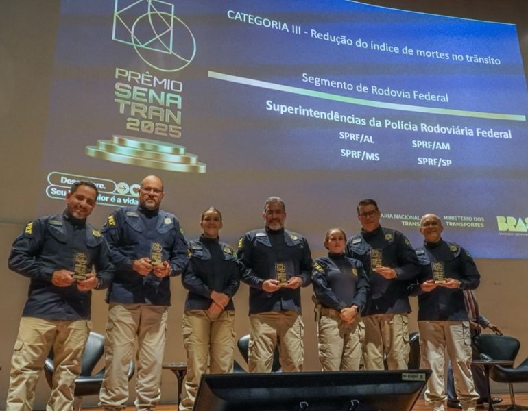 A Polícia Rodoviária Federal (PRF) foi premiada no Prêmio Senatran 2025 pelo desempenho na execução do Plano Nacional de Redução de Mortes e Lesões no Trânsito (Pnatrans). O reconhecimento ocorreu em nível nacional.