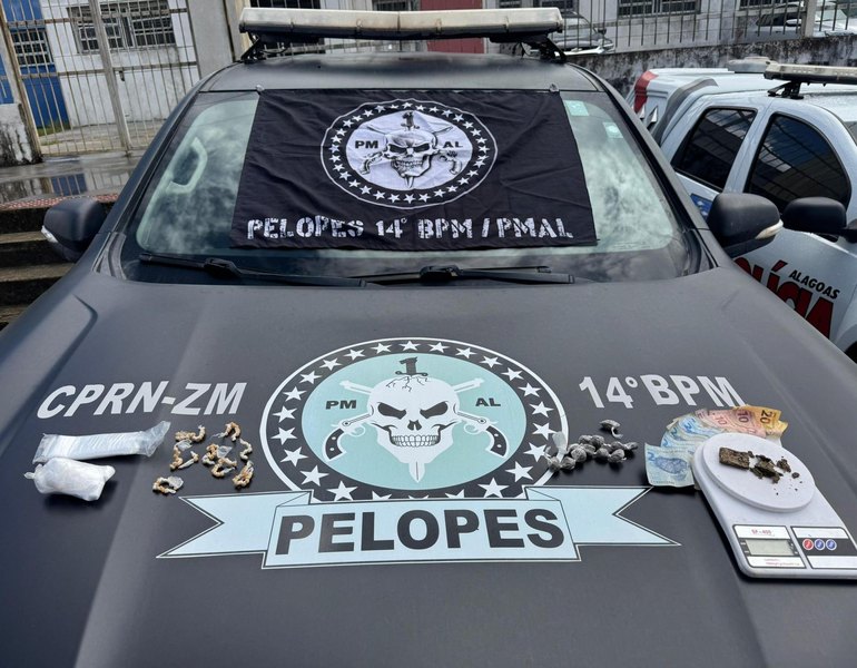Uma guarnição do 14º Batalhão da Polícia Militar de Alagoas (PM/AL) prendeu, nesta segunda-feira (13/4), um homem de 24 anos por tráfico de drogas, no município de Messias.