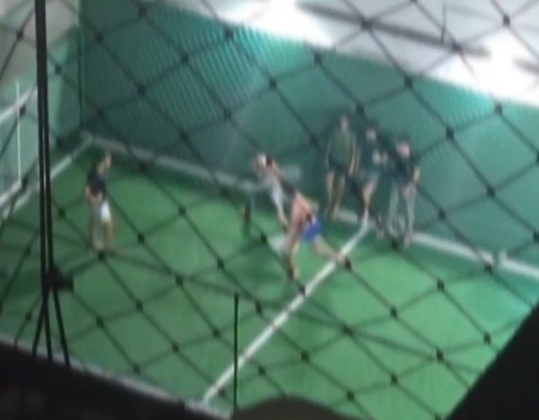 Imagens gravadas por um morador mostram o momento da briga entre jovens usando luvas e caneleiras de muay thai dentro da mini quadra do edifício, onde outras pessoas assistiam e filmavam.