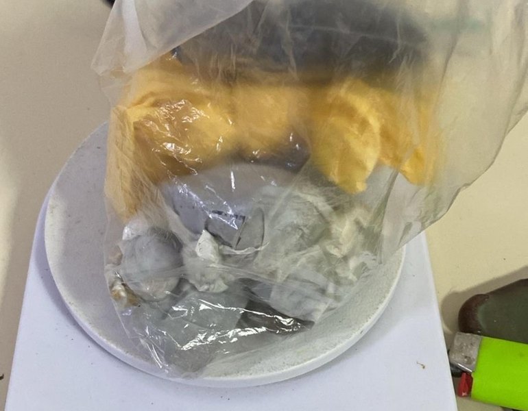 Após ser alcançado, os policiais encontraram com ele cerca de 100 gramas de maconha fracionadas e uma cartela de Rohypnol.