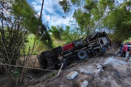 Caminhão tomba na Ladeira da Chesf em Rio Largo; Bombeiros realizam resgate