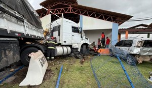 Carreta desgovernada derruba fachada de escola no interior de Alagoas