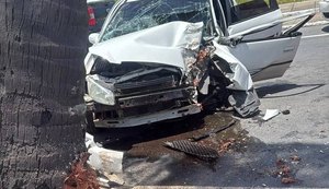 Colisão com coqueiro deixa motorista preso às ferragens em Maceió