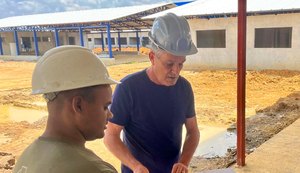 Prefeito verifica andamento das obras da nova escola em Branquinha