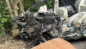 Colisão entre Corolla e caminhão deixa um morto e interdita BR-104, em Branquinha